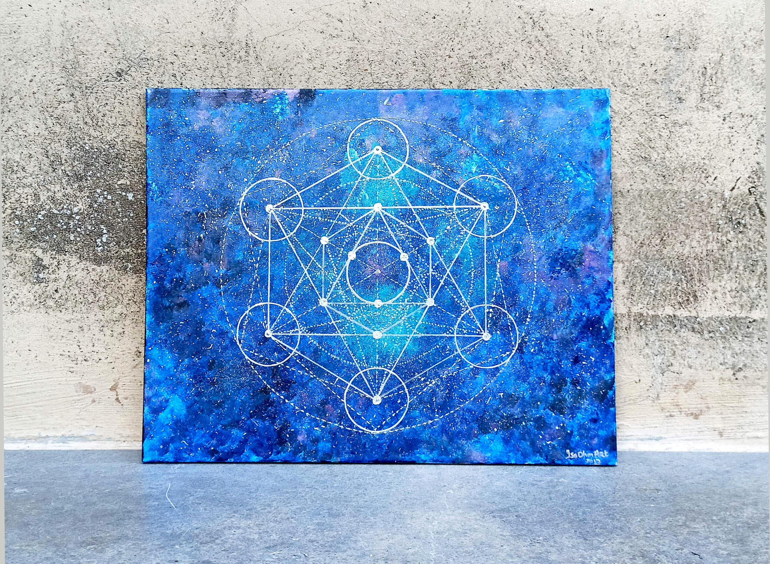 El mandala cubo de Metatrón con sus tonos azules nos conecta con el centro del universo y la geometría sagrada.